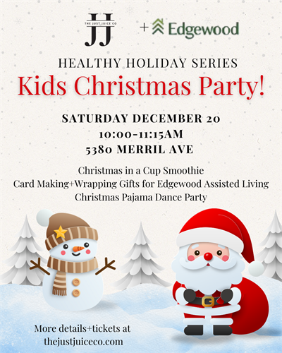 This 75 minute Experience is intended to bring joy, fun and magic to the children in our lives. Kid will enjoy sipping on a Christmas in a cup smoothie! Oat milk, cinnamon, vanilla, banana blended up and in a cup! Kids will make cards and wrap gifts for the resident's at Edgewood Senior Living. We will move our bodies to all the best and most loved Christmas tunes-all in our Christmas/Winter themed Jammie’s!