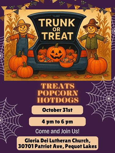 October 31 from 4 to 6 pm CANDY, hot dogs, popcorn, fun!